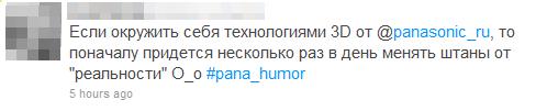 Принять участие в этом конкурсе могут все фолловеры официального твиттер-аккаунта Panasonic: необходимо придумать смешной твит, обращенный к Panasonic (@panasonic_ru) и поставить тег #pana_humor.